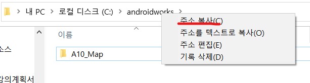 탐색기에서 원하는 폴더의 주소를 복사해서