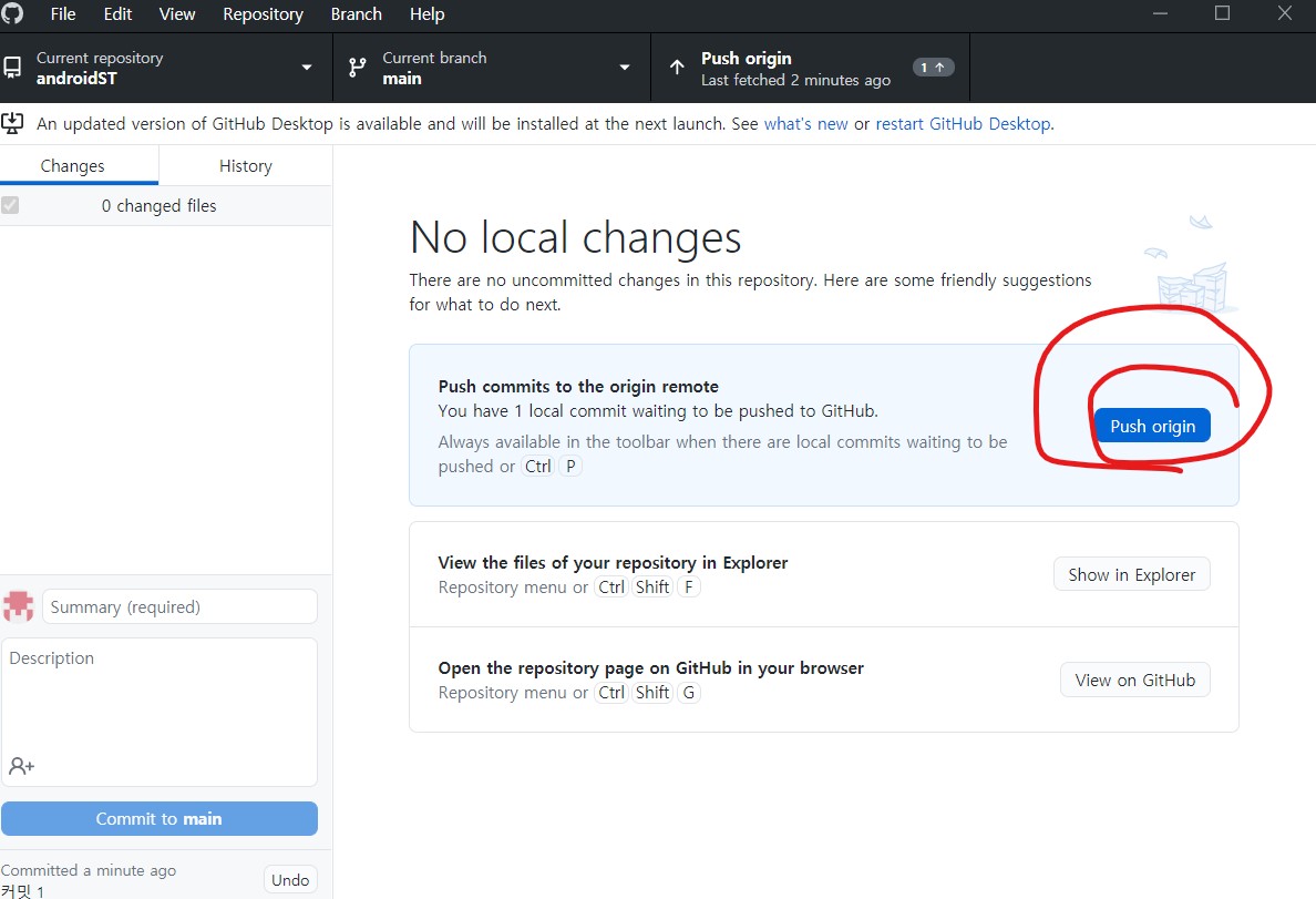 그다음 PUSH ORIGIN 을 누르면 웹까지 변경이 되어있어요