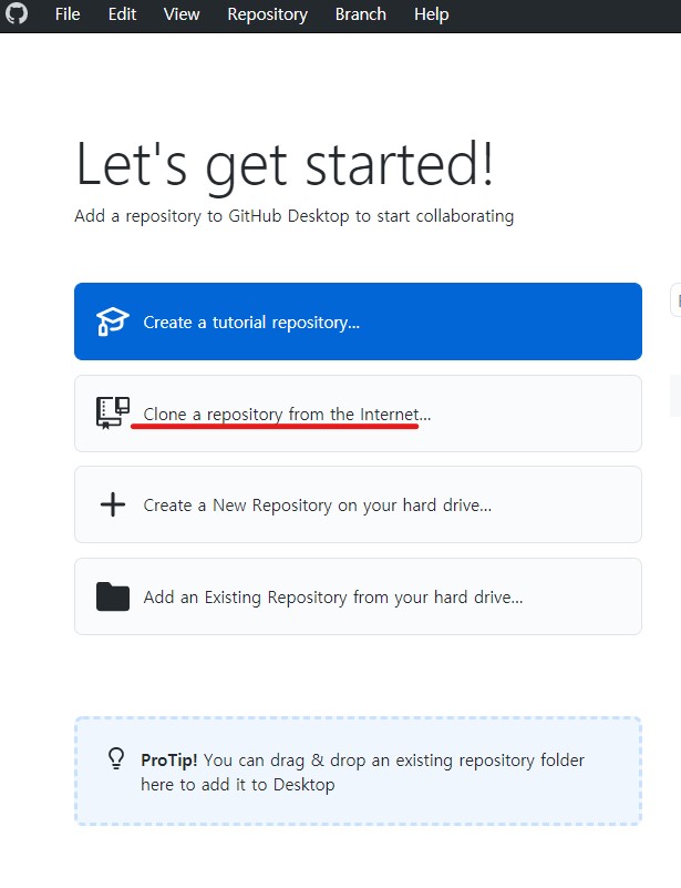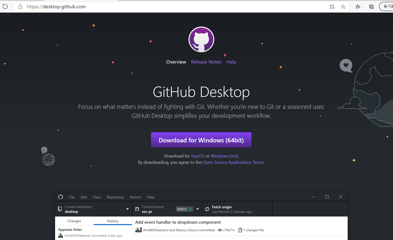 GITHUB 에서 제공하는 깃허브 데스크톱 프로그램 다운로드 링크 입니다.