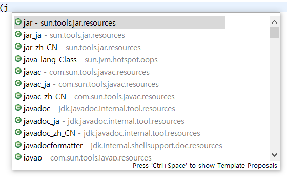 auto activation trigger for java: 옆에 . 만이 입력 되어 있습니다