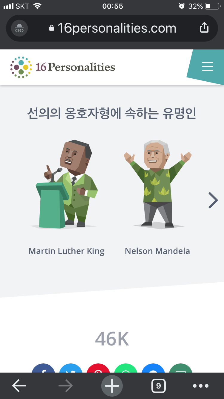 또한 마지막에 검사결과 나의 유형에 속한 유명인을