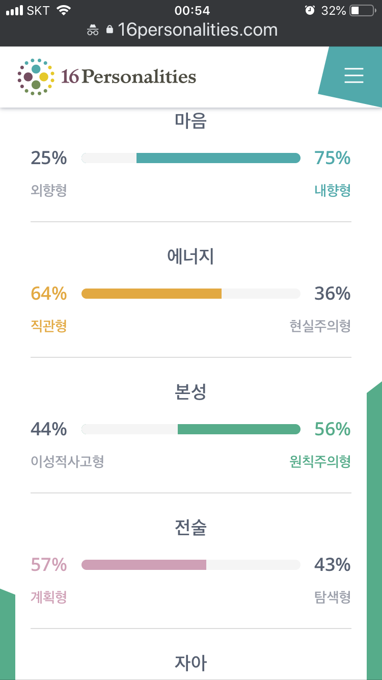 16personalities 사이트는 그래픽과 UI 도 너무 흥미로운 사이트고 결과도 오차없이 정확해서