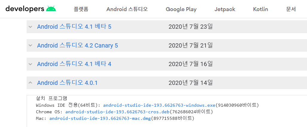 Android 스튜디오 다운로드 자료실 | Android 개발자 | Android Developers