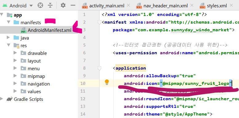 5. 앱 하단 -- manifests 폴더 ---- 메니페스트 파일 선택