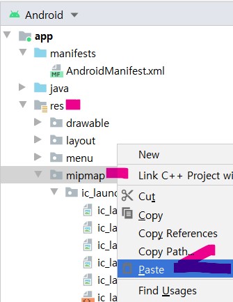 2. 앱 하단 - res 폴더 --- mipmap 폴더에 붙여넣기