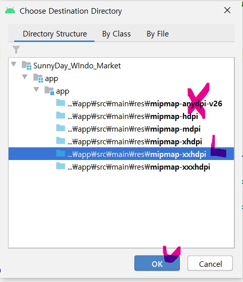 3. 여기서 디렉토리 창이 뜨는데 아이콘 해상도 결정을 위한 단계입니다.