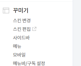 관리메뉴로 들어간 후 꾸미기 - '스킨편집' 메뉴를 클릭합니다