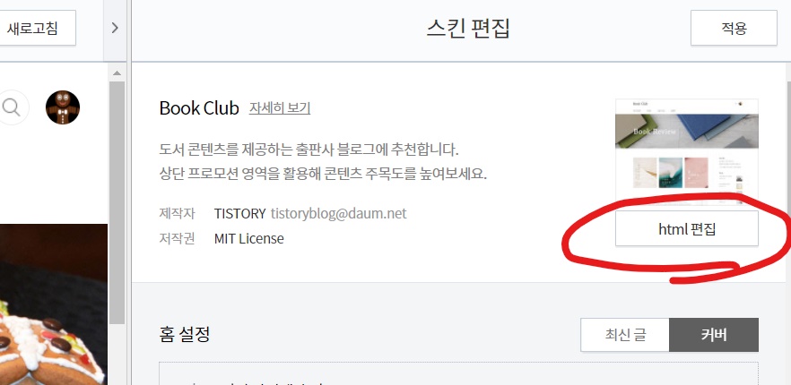 6. 우측 위에 html 편집 버튼을 눌러줍니다.