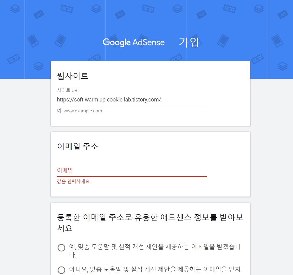 광고를 게재하고 싶은 티스토리의 메인 URL을 입력해주세요