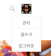 5. 여러분의 티스토리 블로그에서 우측상단 로고를 누르면 '관리'탭이 있으시죠?