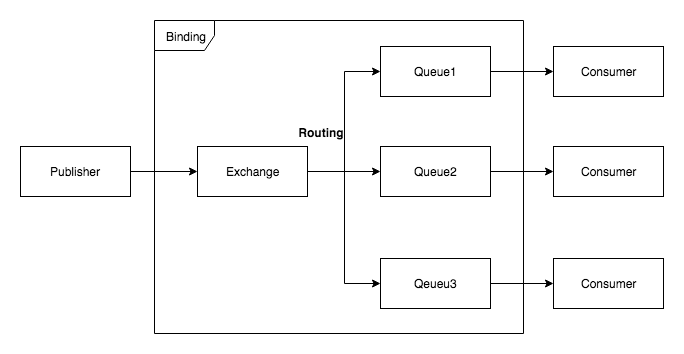 - Consumer가 Queue에 대한 Binding을 가지고 있다가 메시지를 Queue에서 수신