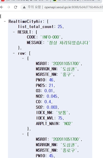 제이슨 을 쓰기전 https://chrome.google.com/webstore/detail/jsonview/chklaanhfefbnpoihckbnefhakgolnmc?hl=ko