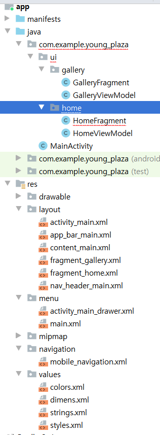<?xml version="1.0" encoding="utf-8"?> <navigation xmlns:android="http://schemas.android.com/apk/res/android" xmlns:app="http://schemas.android.com/apk/res-auto" xmlns:tools="http://schemas.android.com/tools" android:id="@+id/mobile_navigation" app:startDestination="@+id/nav_home"> <!--네비게이션 그래프 xml 이라고도 합니다 startDestinatio을 지정하여 첫화면을 지정해줍니다--> <!--이동관계에 있는 화면들을 넣어줍니다--> <!--홈에서 출발 --> <!--각 프래그먼트에 지정된 id를 통해 메뉴파일에서 이동 name 값에 지정된것은 프래그먼트별 java클래그 label 값으로는 타이틀바에 보일 내용을 작성 layout 으로 실제 프래그먼트 화면을 적용 --> <fragment android:id="@+id/nav_home" android:name="com.example.young_plaza.ui.home.HomeFragment" android:label="@string/menu_home" tools:layout="@layout/fragment_home" /> <fragment android:id="@+id/nav_gallery" android:name="com.example.young_plaza.ui.gallery.GalleryFragment" android:label="@string/menu_gallery" tools:layout="@layout/fragment_gallery" /> <fragment android:id="@+id/nav_slideshow" android:name="com.example.young_plaza.ui.slideshow.SlideshowFragment" android:label="@string/menu_slideshow" tools:layout="@layout/fragment_slideshow" /> </navigation>