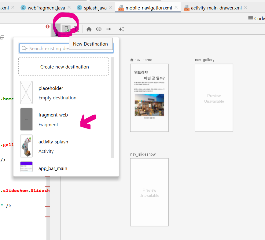 네비게이션 폴더의 mobile_navigation파일 (네비게이션 그래프 )
