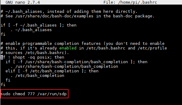 | pi@raspberrypi:~ $ sudo chmod 777 /var/run/sdp |