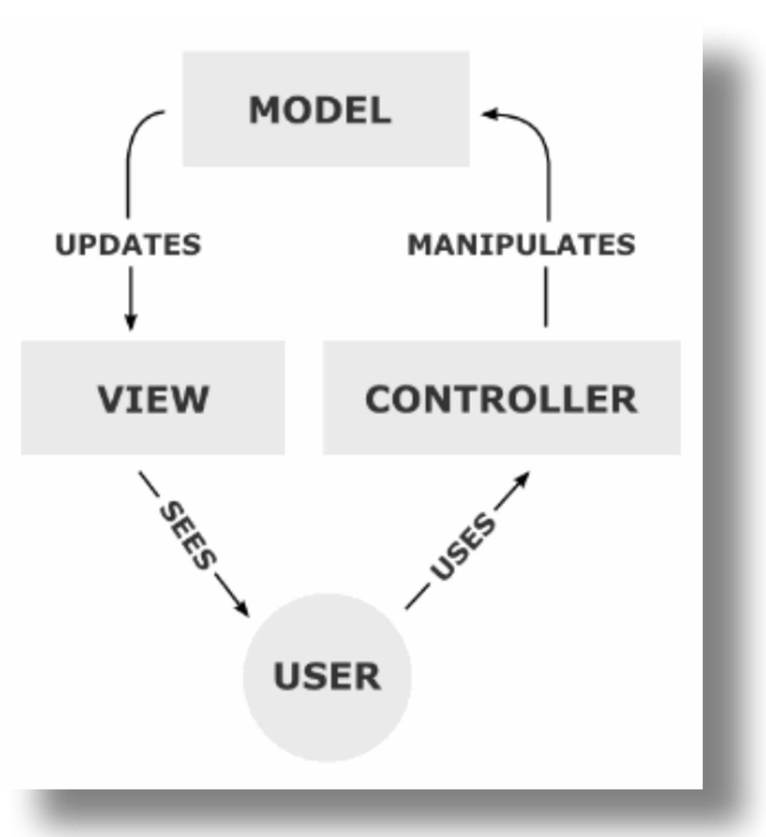 -> 데이터가 반영된 View는 사용자에게 보여진다. (Sees)