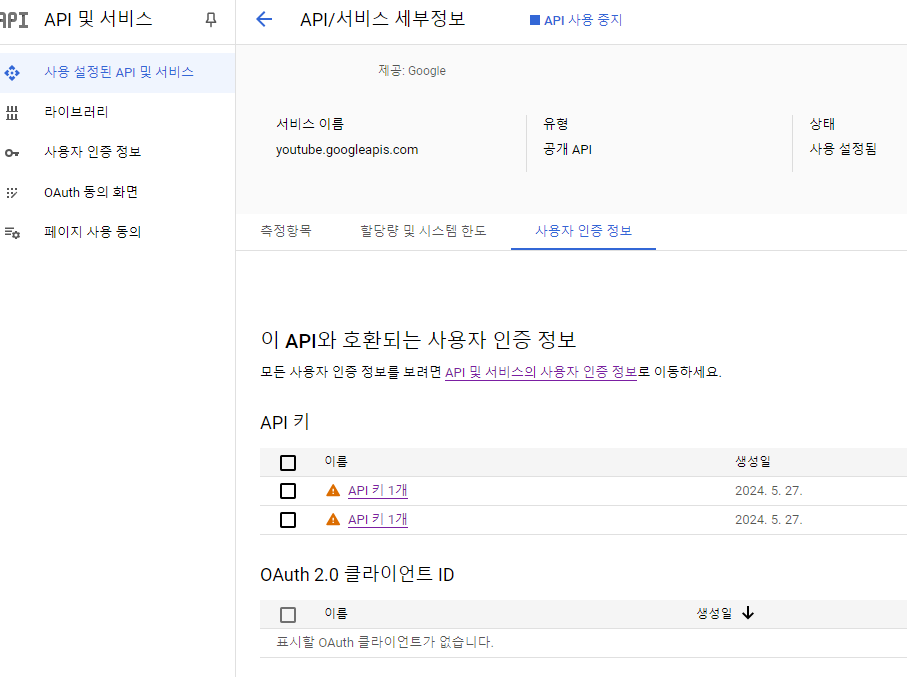 이번에 유튜브 api 를 두번째 사용하게 되어 정리할 겸 작성한