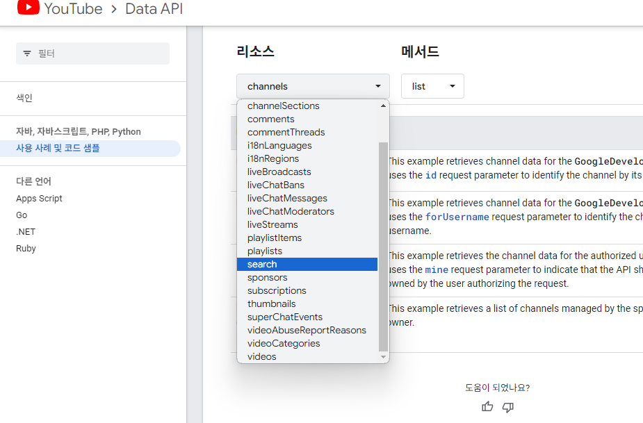 사용 사례 및 코드 스니펫 | YouTube Data API | Google for Developers