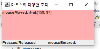 s3.setText("mouseMoved: 좌표(" + e.getX() + ", "+ e.getY() + ")");