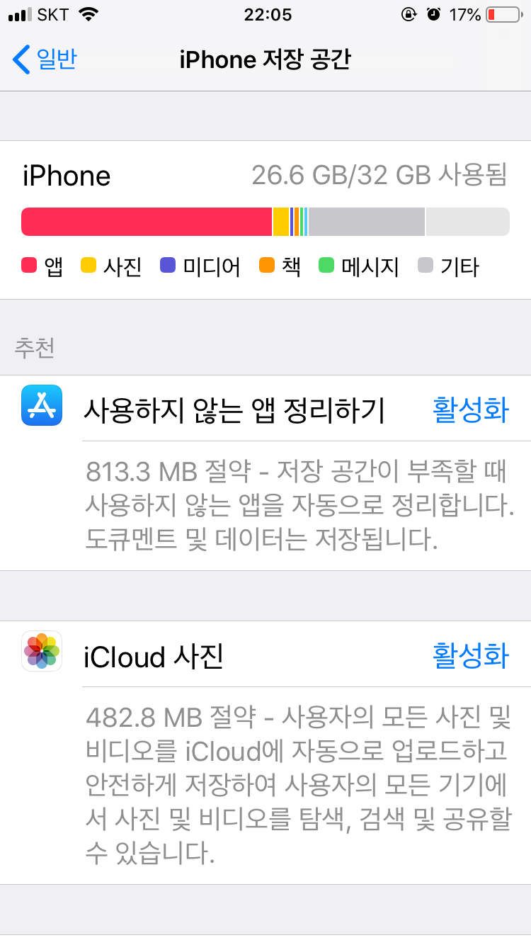 정리전에 저는 용량차지 1위가 카카오톡이였습니다